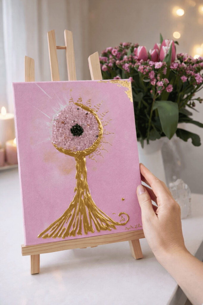 „Objavte pokoj a harmóniu s mojimi meditatívnymi obrazmi, ktoré zachytávajú esenciu duchovného prebudenia a vnútorného mieru. Každý obraz je navrhnutý tak, aby prinášal pozitívnu energiu, podporoval harmóniu, vnášal svetlo do priestoru a múdrosť do osobného rozvoja.“