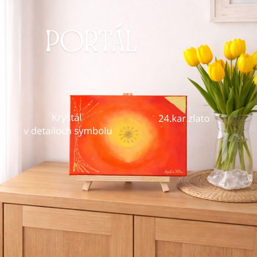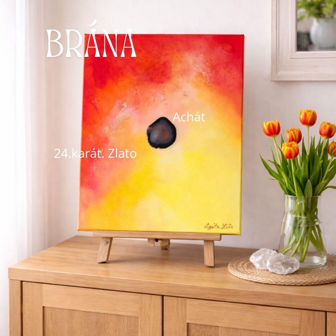 ◉„Brána sily a radosti zo života“ otvára priestor pre prežívanie vitality a vedomej radosti. Je doplnená o modrý achát, ktorý prináša upokojenie, mier a jemné vyváženie emócií. 24-karátové zlato harmonicky prepája energiu obrazu a rozjasňuje jeho pôsobenie. Vždy keď sa na neho pozrieš ťa naladí na silu a radosť zo života- "Dovoľujem si cítiť silu a radosť zo života". /30x40 aj s dreveným stojanom/ 220€